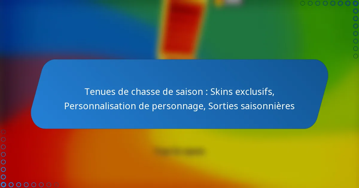 Les tenues de prix de la chasse saisonnière sont des skins exclusifs attribués aux joueurs lors d’événements saisonniers spécifiques dans les jeux. Ces tenues améliorent la personnalisation des personnages et offrent des styles visuels uniques qui reflètent le thème de la saison.